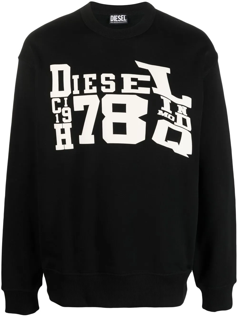 黑色、棉、正面图案印花、圆领、长袖。