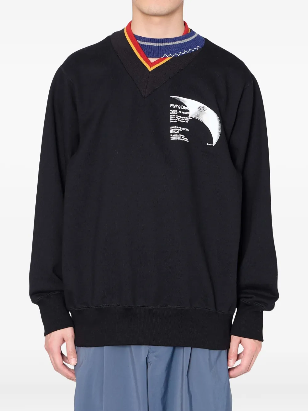 V领图案印花卫衣