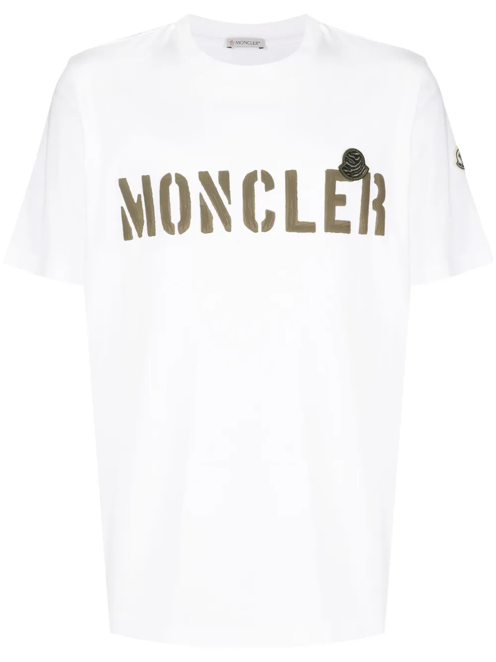 白色、棉、胸前饰有logo印花、胸前logo贴花、圆领、短袖、平直下摆。