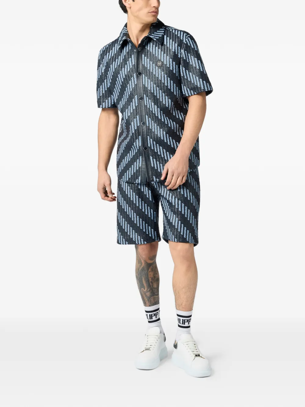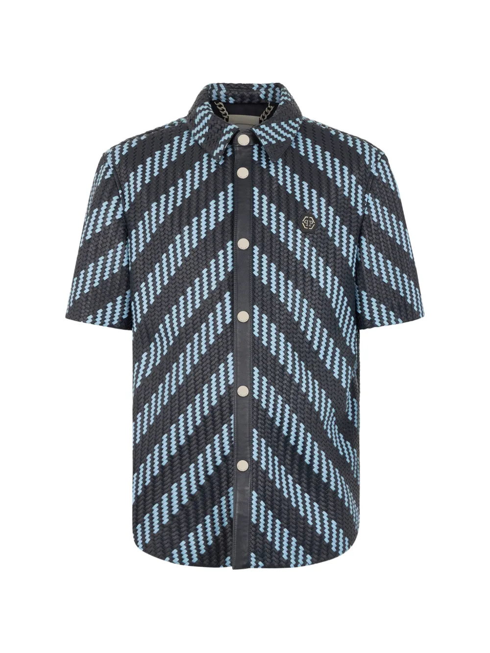 编织条纹皮质衬衫