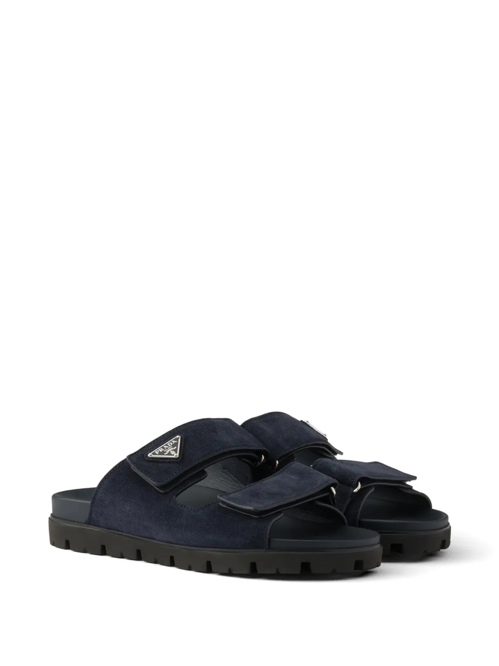 这款柔软绒面皮凉鞋的设计,巧妙地将运动功能性与精致细节融合为一。这款现代且百搭的鞋履,饰以经典的珐琅金属三角形logo。