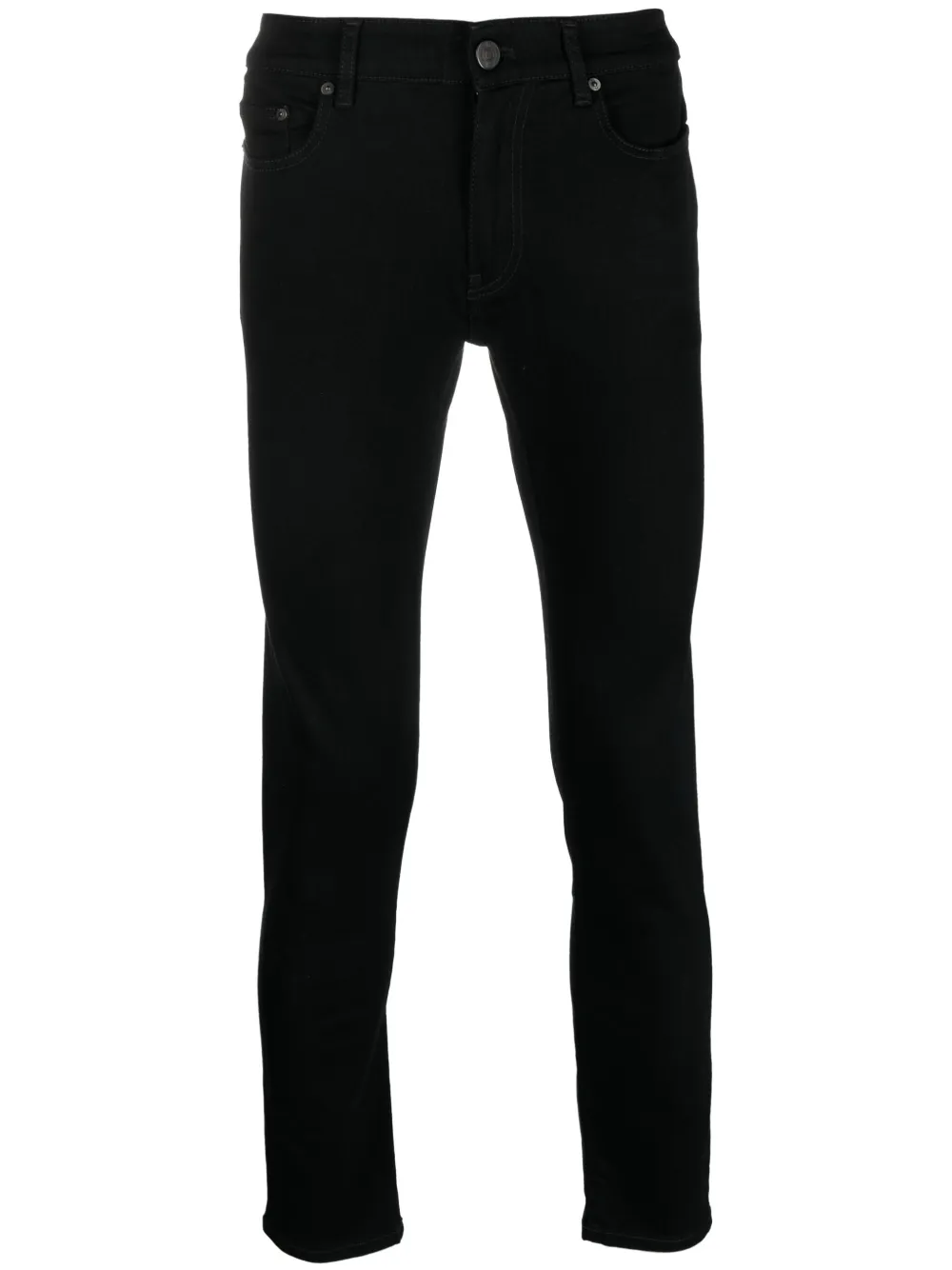 同色系缝线细节 、后置logo贴花、正面饰有纽扣与拉链、经典五口袋设计。
