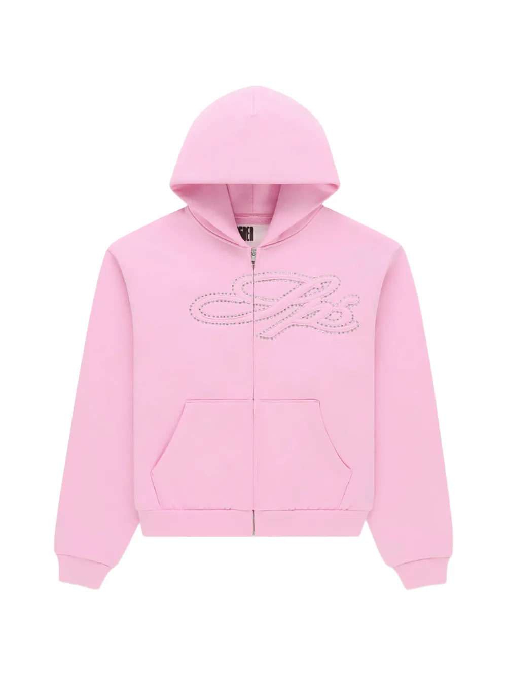 水钻缀饰拉链连帽衫