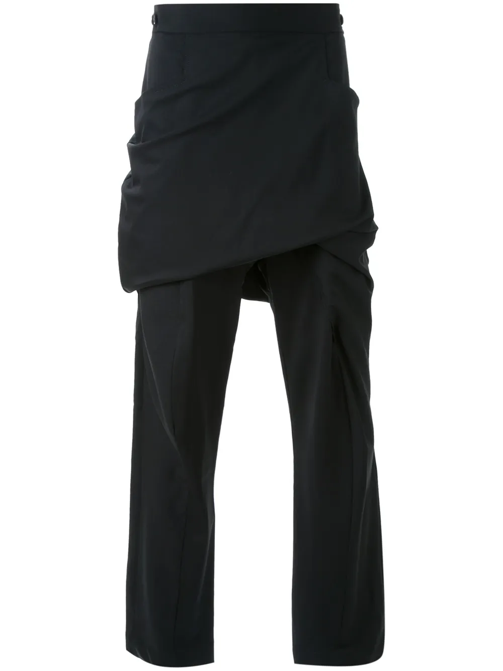 Thamanyah 黑色 弹性羊毛 裹身裙兜长裤。 裹身式层搭, 直筒长裤。