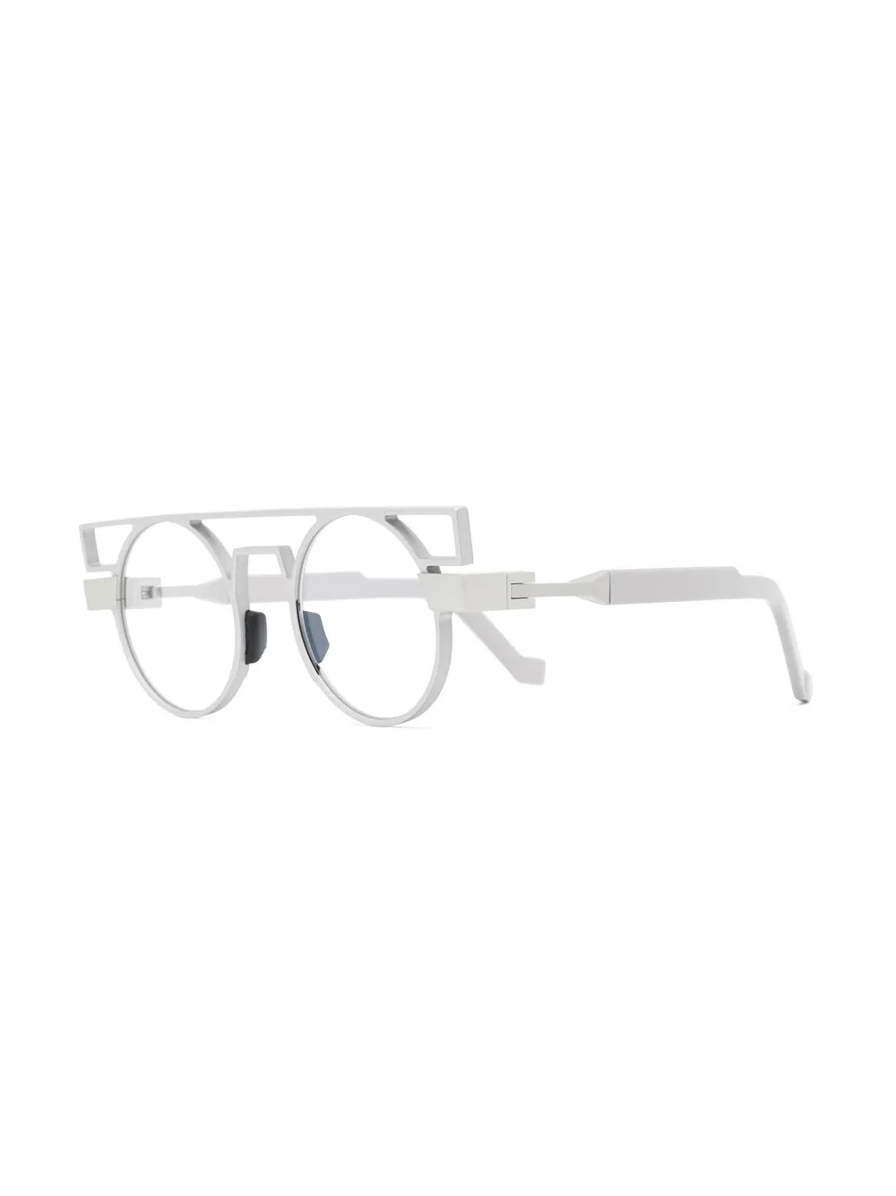 银色、圆框、透明镜片、直镜腿、带弧度镜脚套。FARFETCH 所有眼镜均不设验光镜片。这款商品随附保护盒。