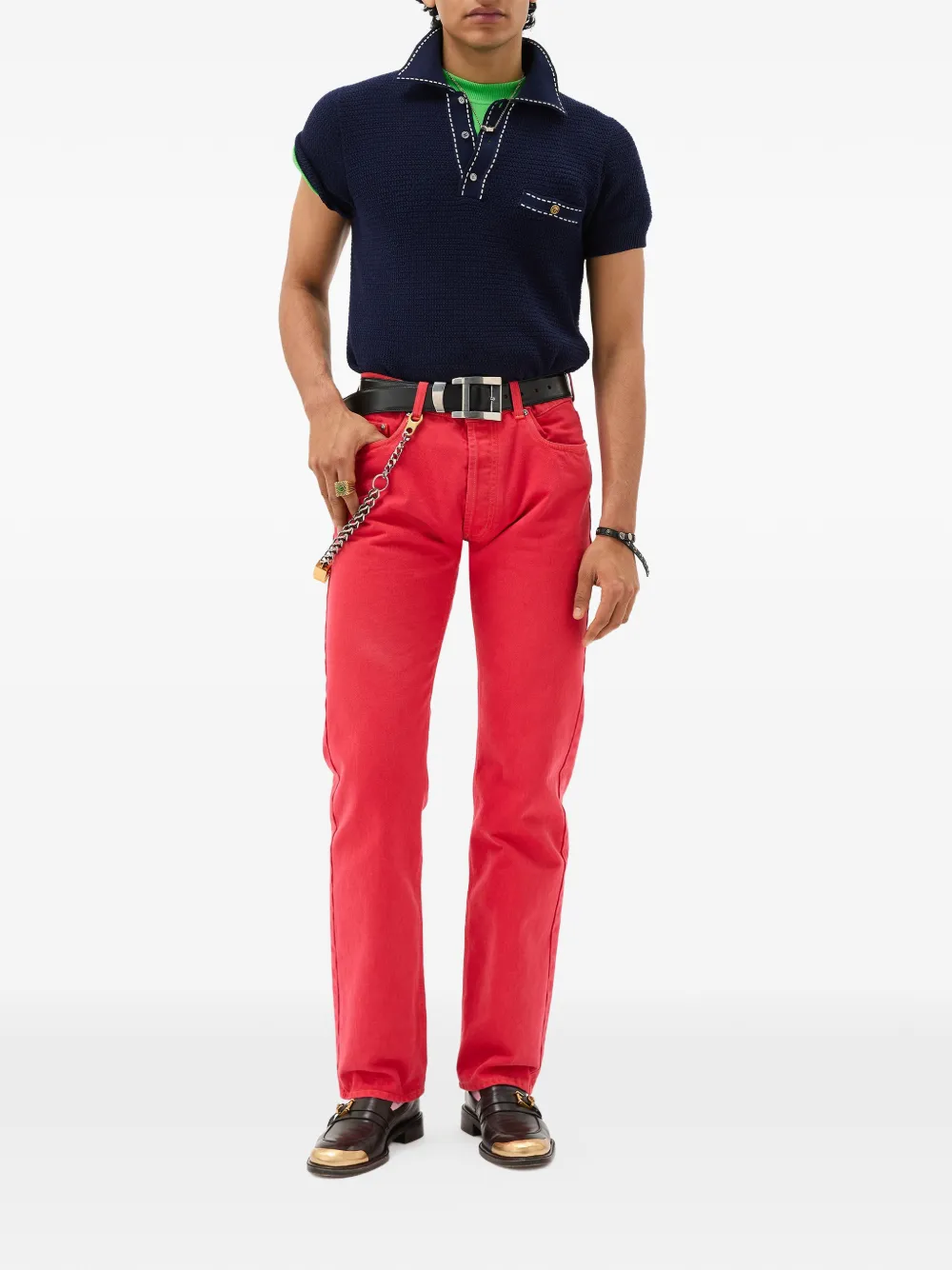 短袖棉针织polo衫饰有对比缝线细节,胸袋有小巧美杜莎摁扣。
