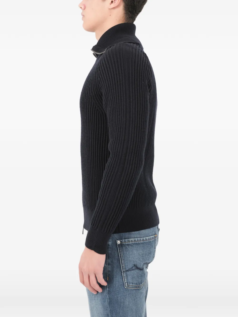 高领拉链开衫
