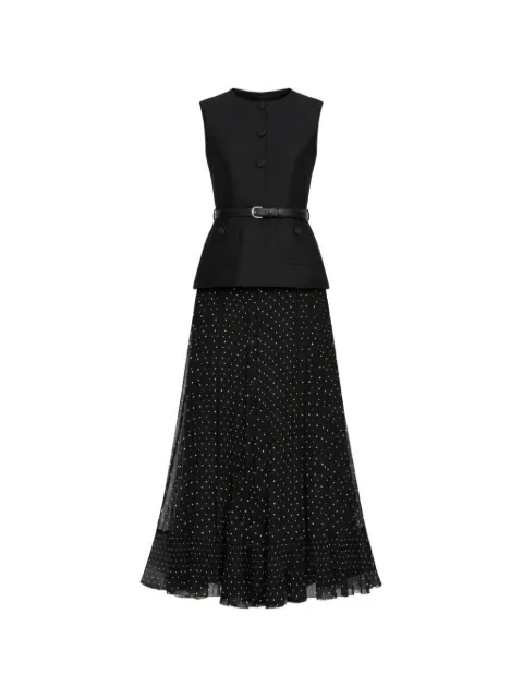 无袖波点超长连衣裙