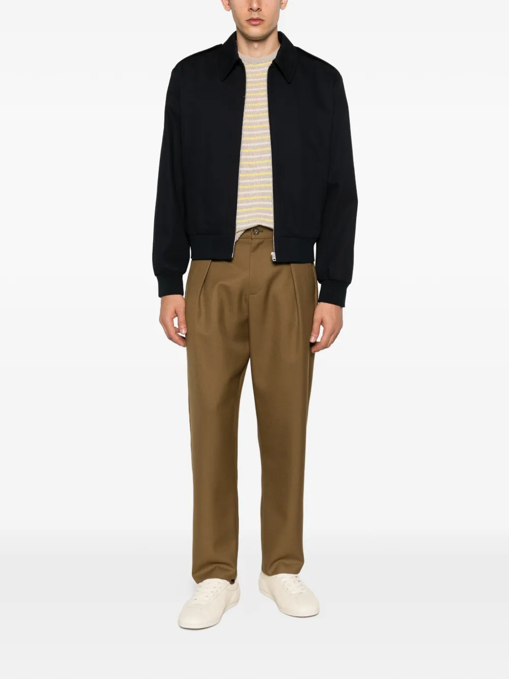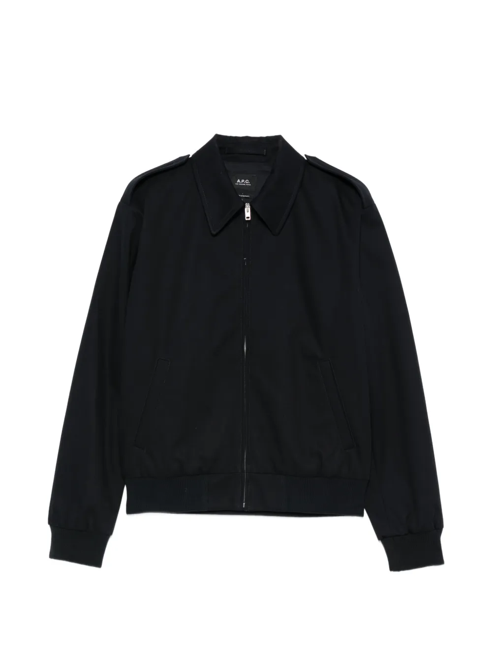 dark navy front zip fastening pointed collar side welt pockets shoulder epaulettes