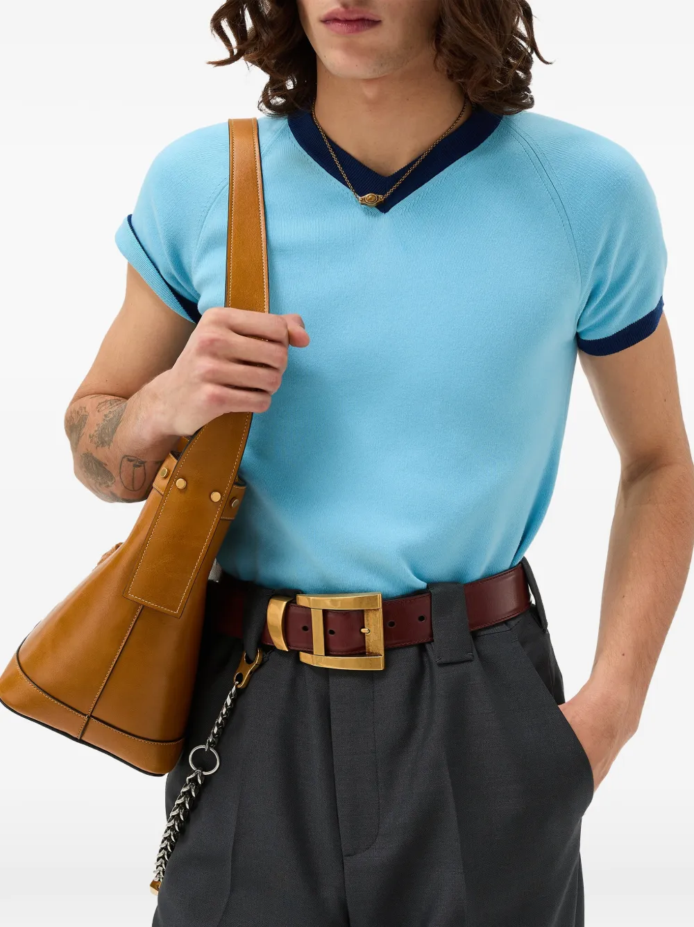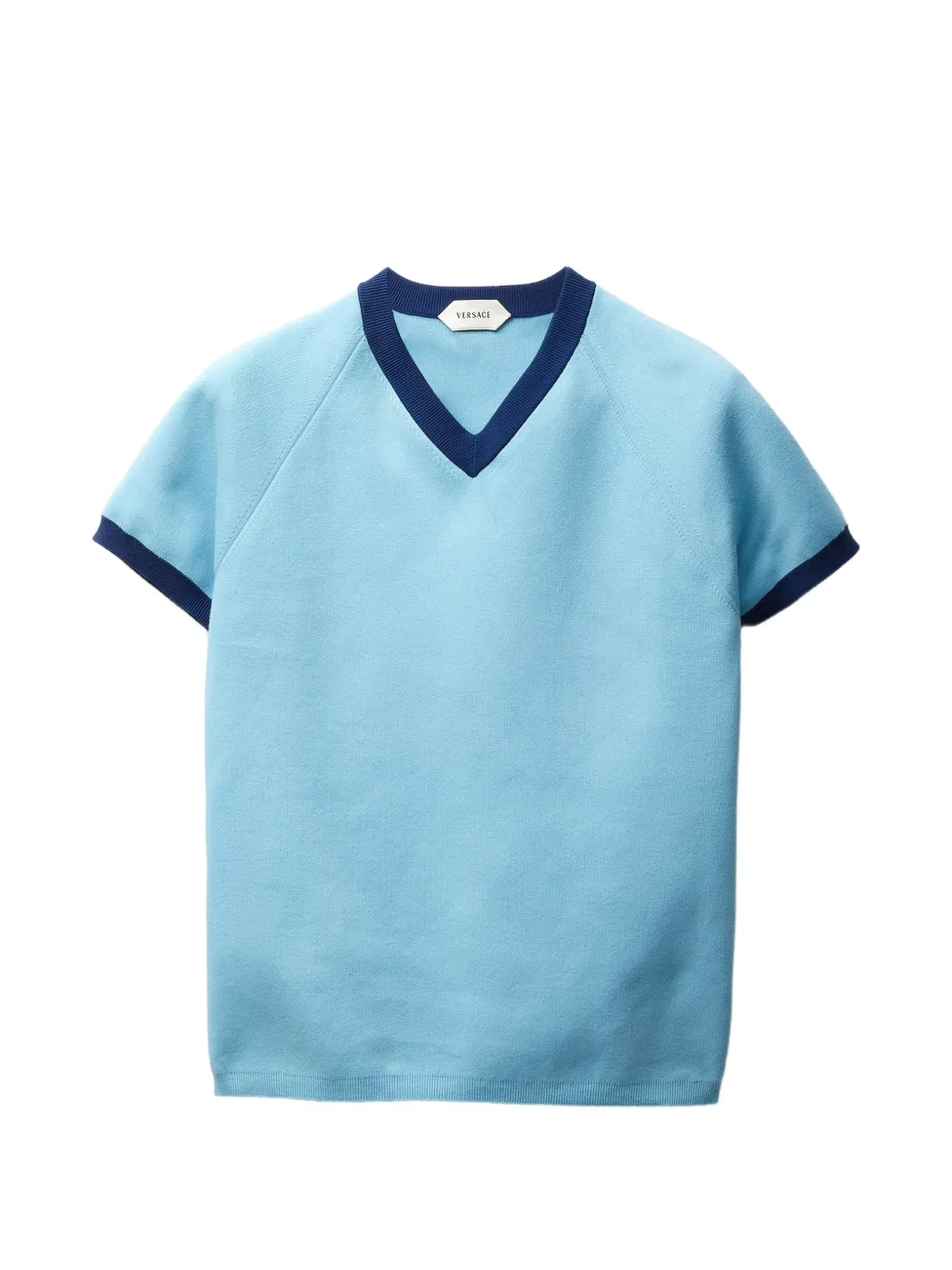 Playera de algodón manga corta con escote en V con un pequeño aplique de Medusa en la parte posterior.