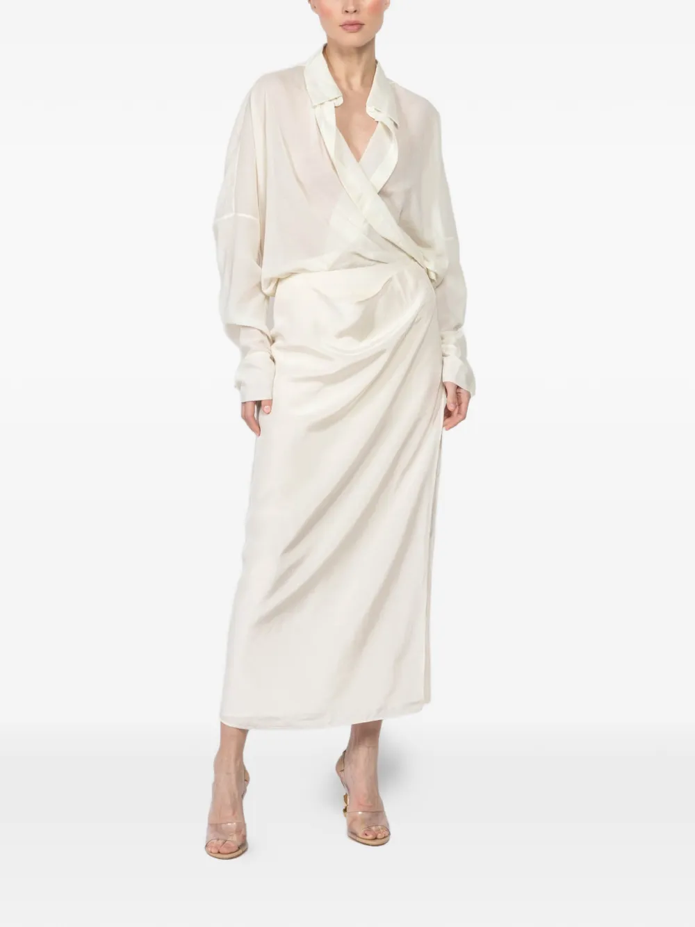 wrap-front draped maxi skirt