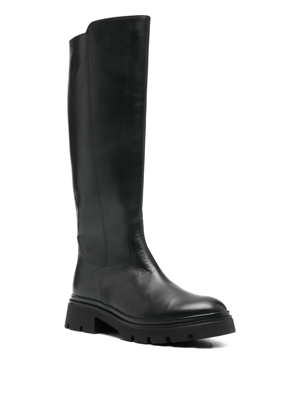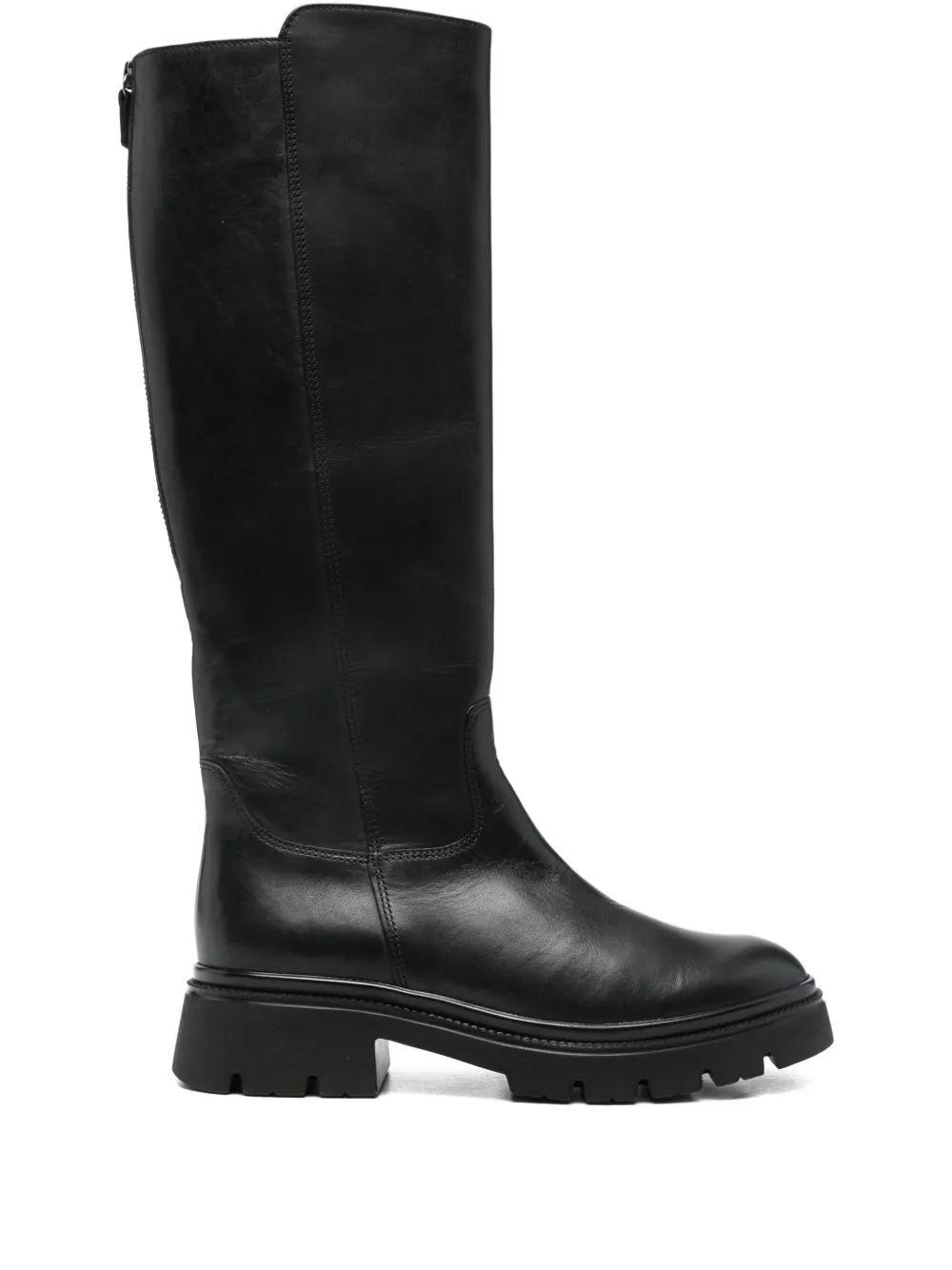 lug-sole zip leather boots