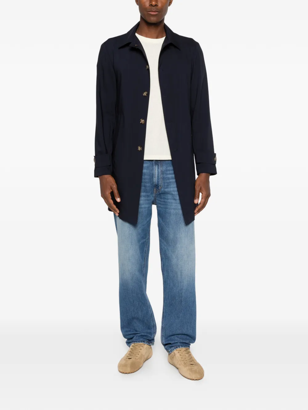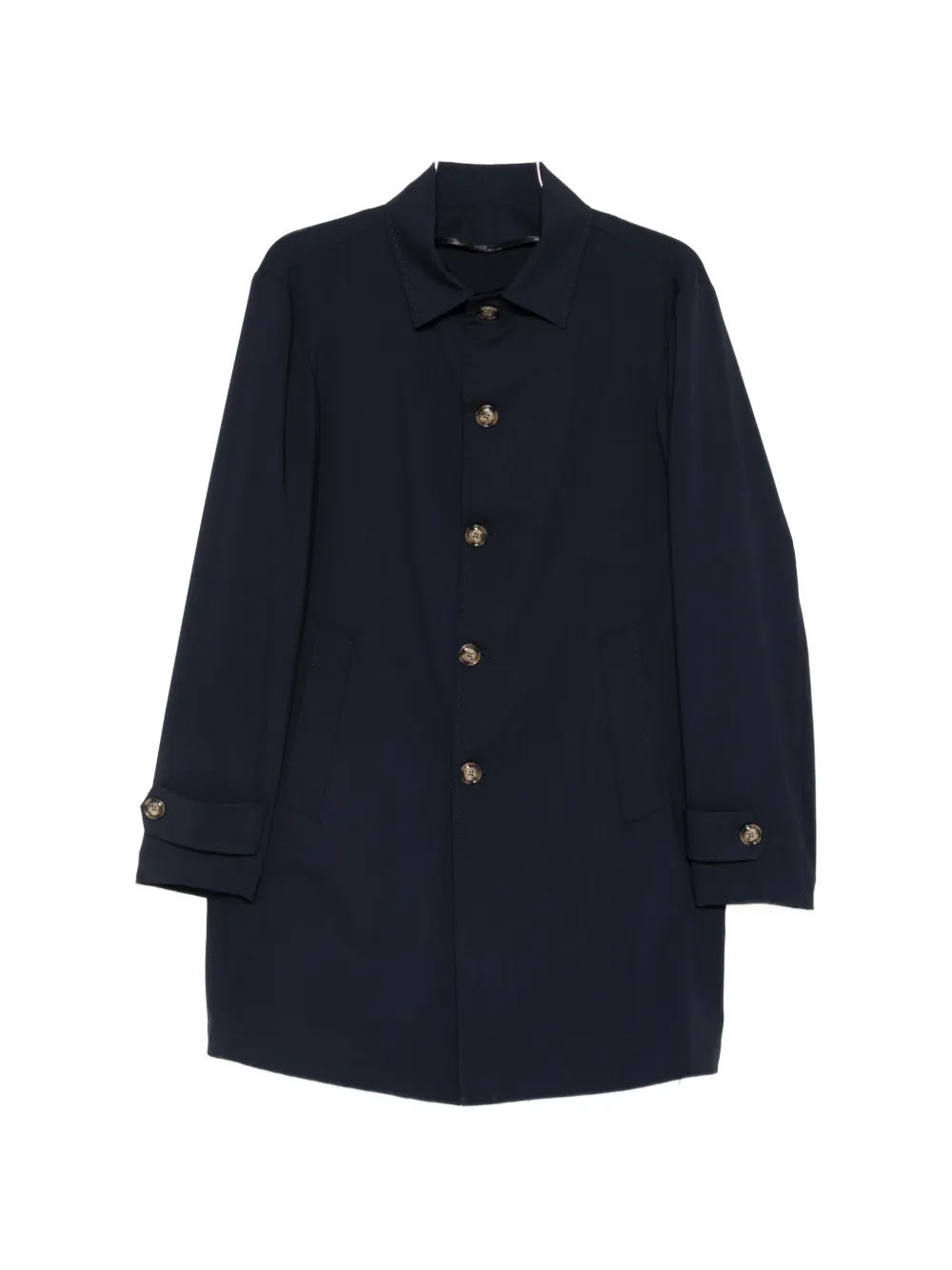 navy blue spread collar button fastening long sleeves buttoned cuffs welt pockets