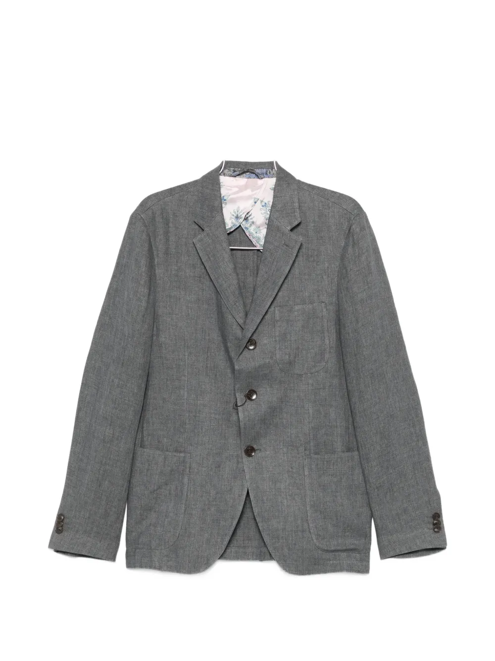 grEy melange effect notched lapels front button fastening long sleeves buttoned cuffs chest patch pocket two front patch pockets