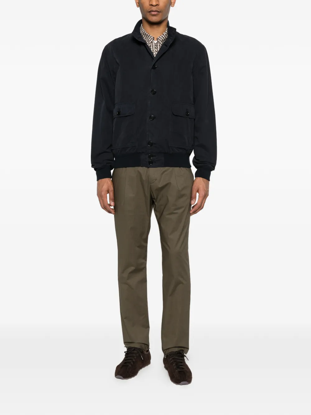 green elasticated waistband drawstring fastening two side inset pockets button fastening pleat detailing