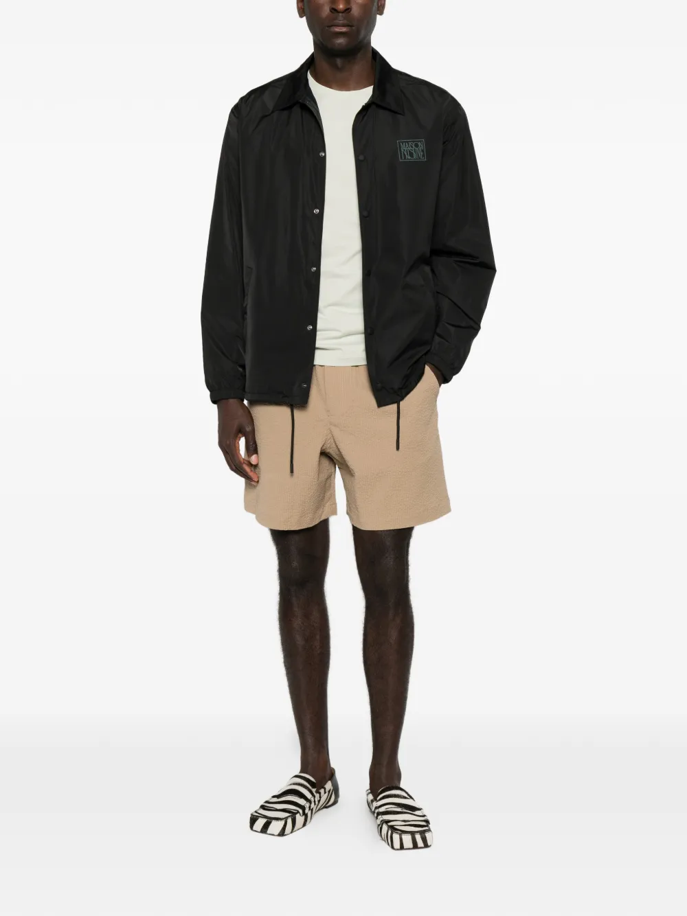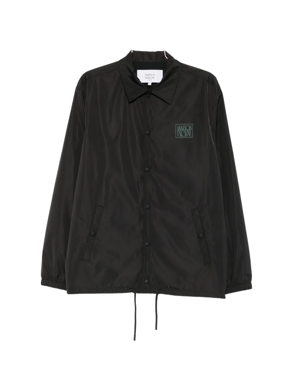 black logo print at the chest spread collar front press-stud fastening long sleeves elasticated cuffs two side welt pockets drawstring hem