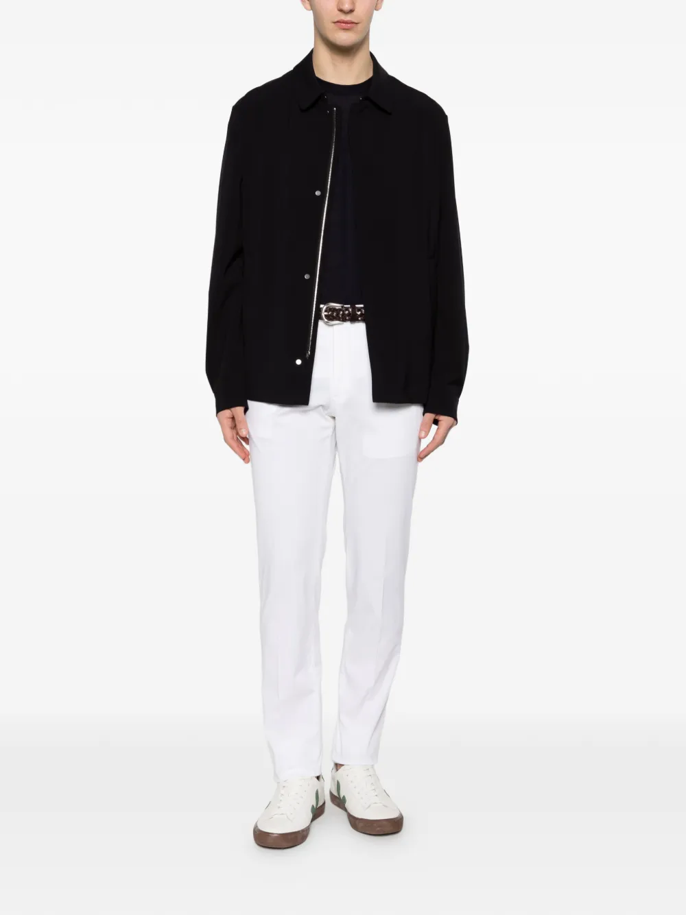 dark blue zip fastening welt pocket