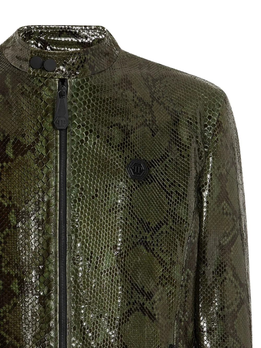 green band collar long sleeves two side zip-fastening pockets logo plaque at the chest press-stud fastening at the neck