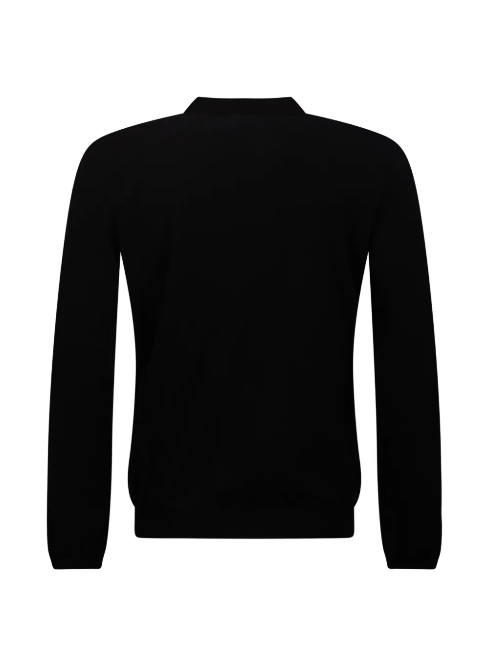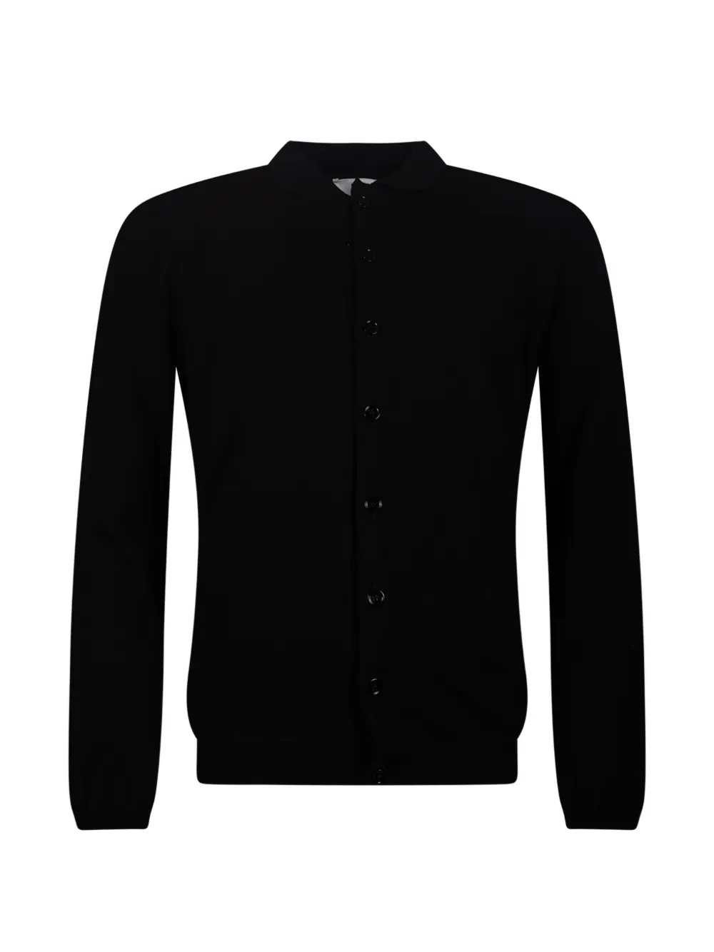 black polo collar front button fastening long sleeves ribbed cuffs ribbed hem