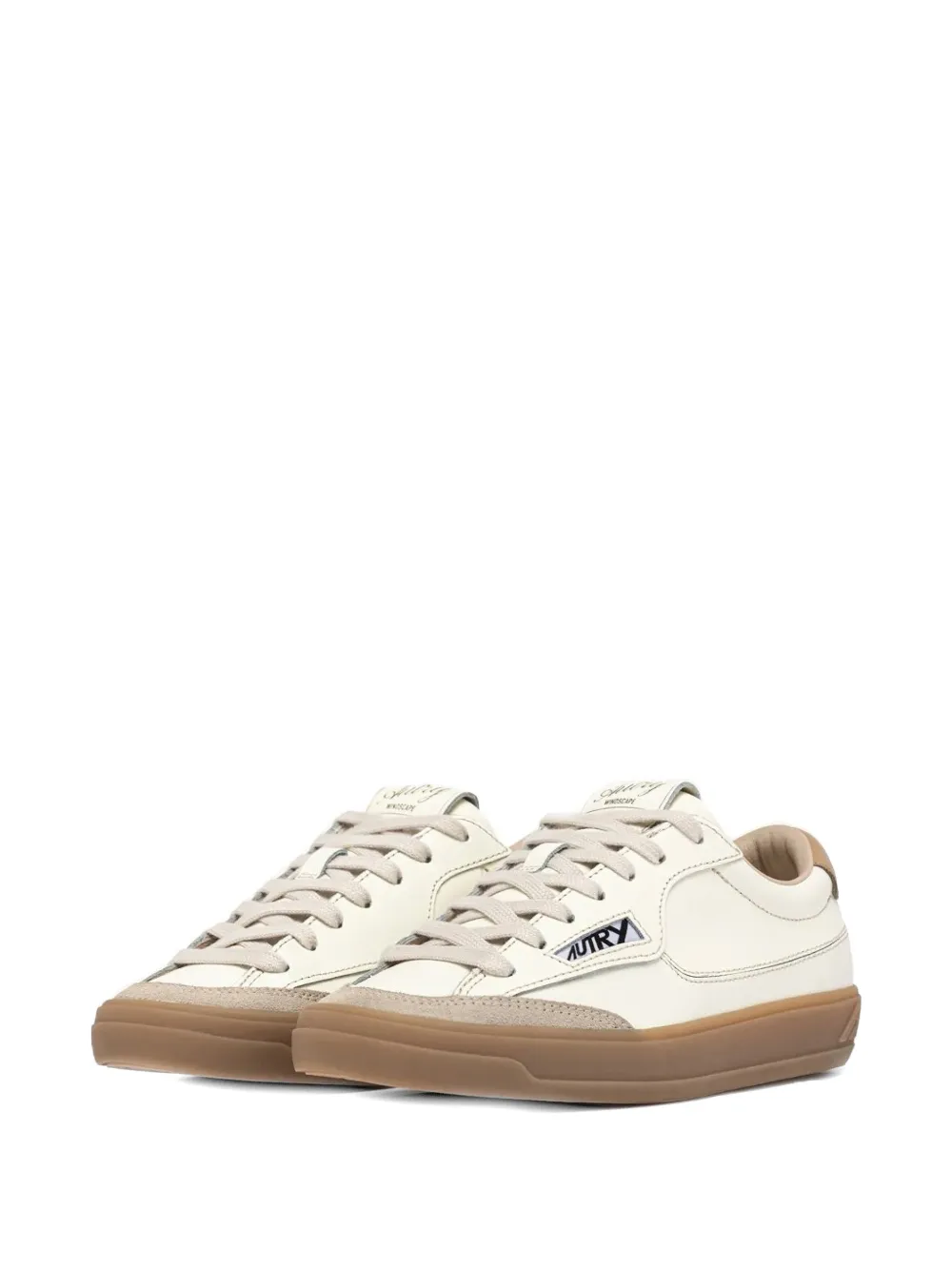 light beige logo patch to the side front lace-up fastening round toe flat rubber sole branded heel counter logo-print tongue
