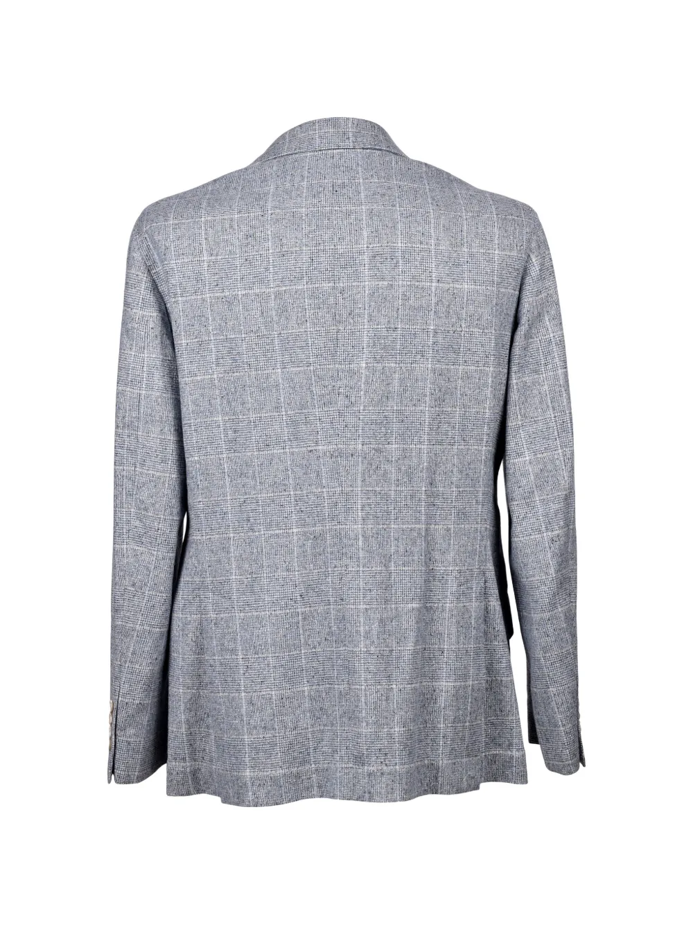 blue check pattern notched lapels front button fastening long sleeves buttoned cuffs chest patch pocket
