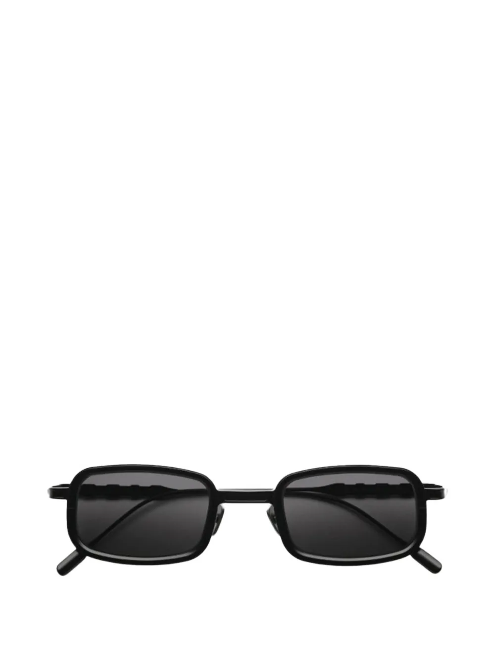 black rectangle frame tinted lenses adjustable nose pads These glasses come with a protective case.