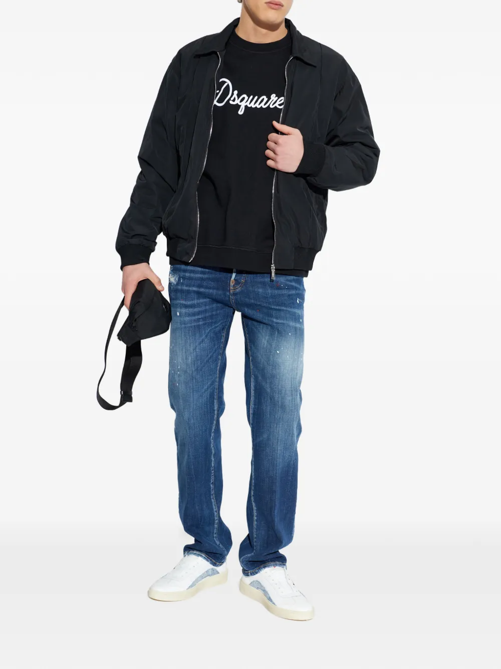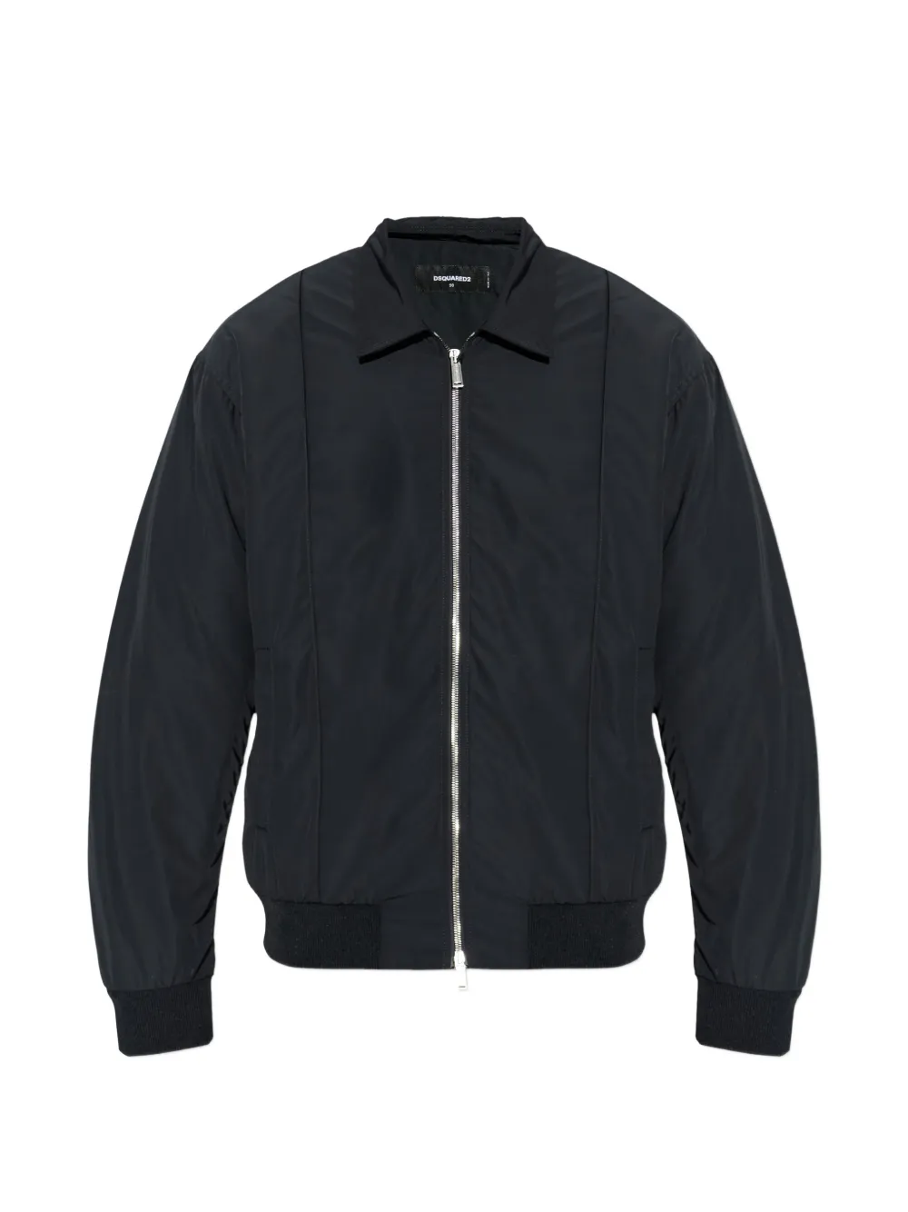 black zip fastening point collar ribbed cuffs welt pocket ribbed hem
