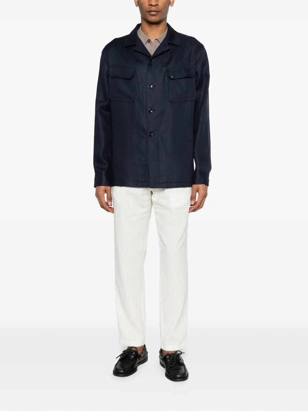 white button closure elasticated waistband pleated front