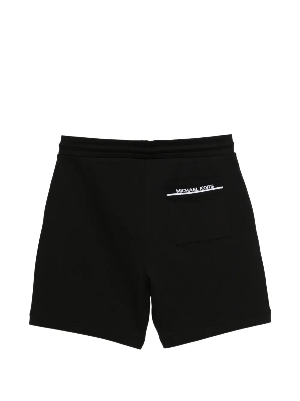 black jersey texture elasticated drawstring-waistband two side slit pockets rear patch-pocket logo patch to the rear silver-tone hardware straight hem