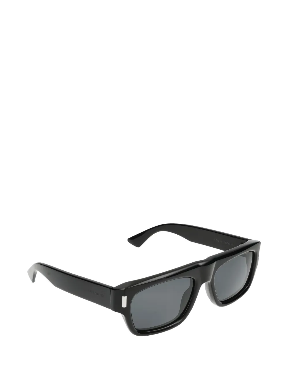 black rectangle frame tinted lenses logo-engraved arms silver-tone corner details curved tips These glasses come with a protective case.