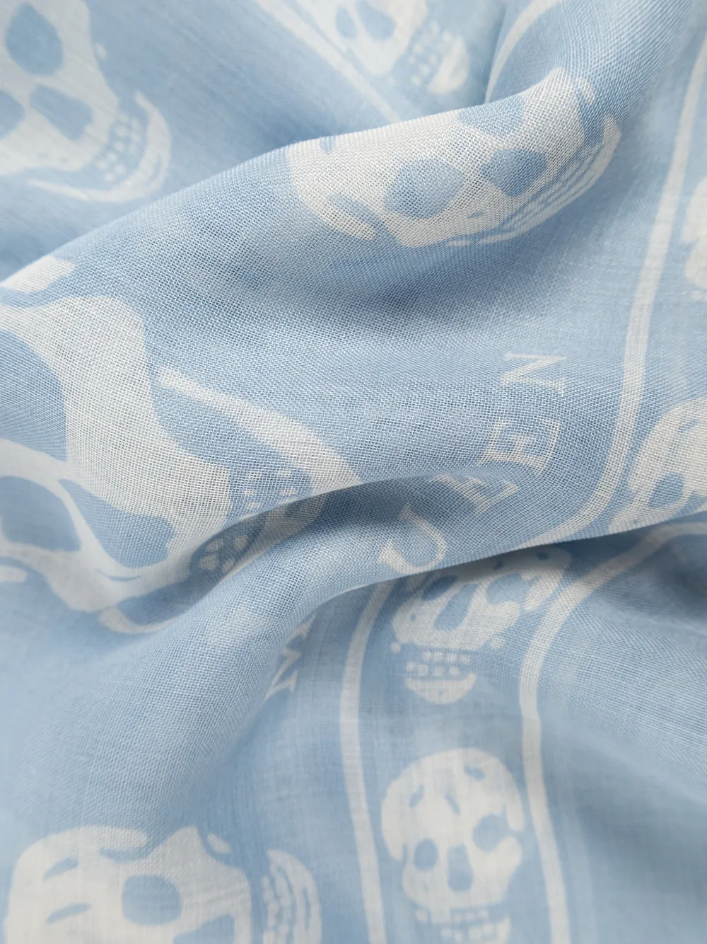 blue skull motif fringed trim