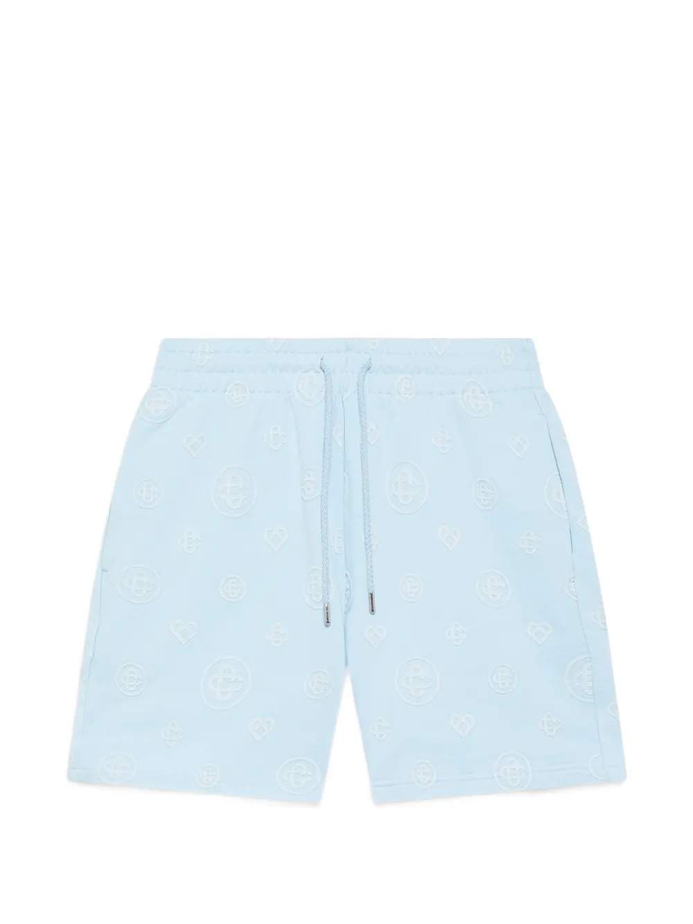 light blue monogram pattern drawstring waist side pockets back patch pocket