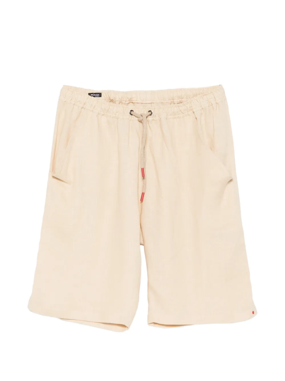 beige drawstring fastening side diagonal pockets back jetted pocket embroidered detail
