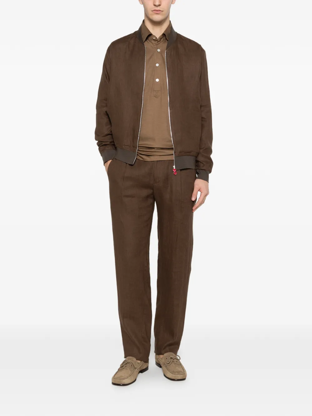 brown zip fastening long sleeves ribbed hem and cuffs
