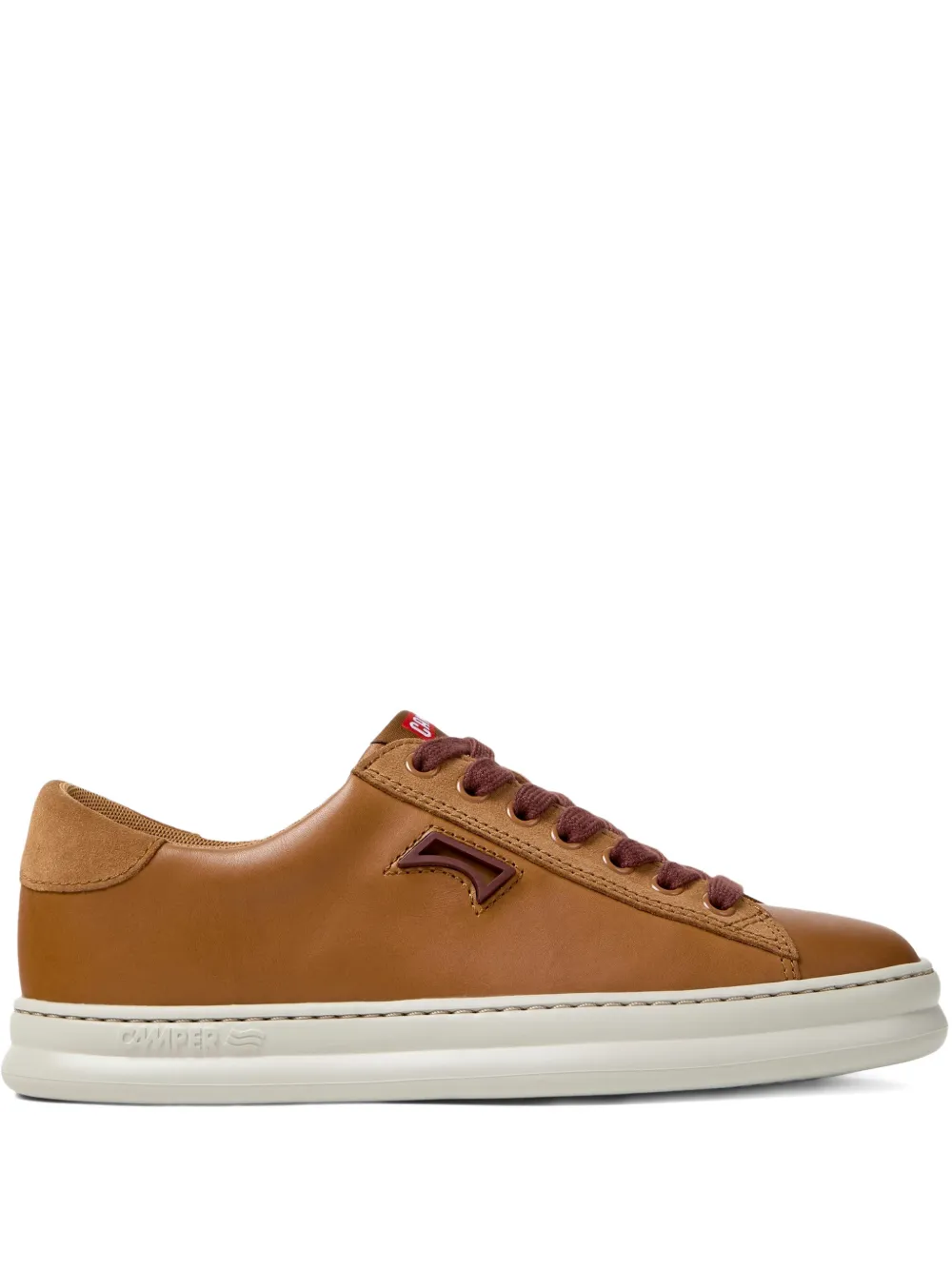 medium brown suede heel counter logo appliqué contrasting laces rubber sole flat sole
