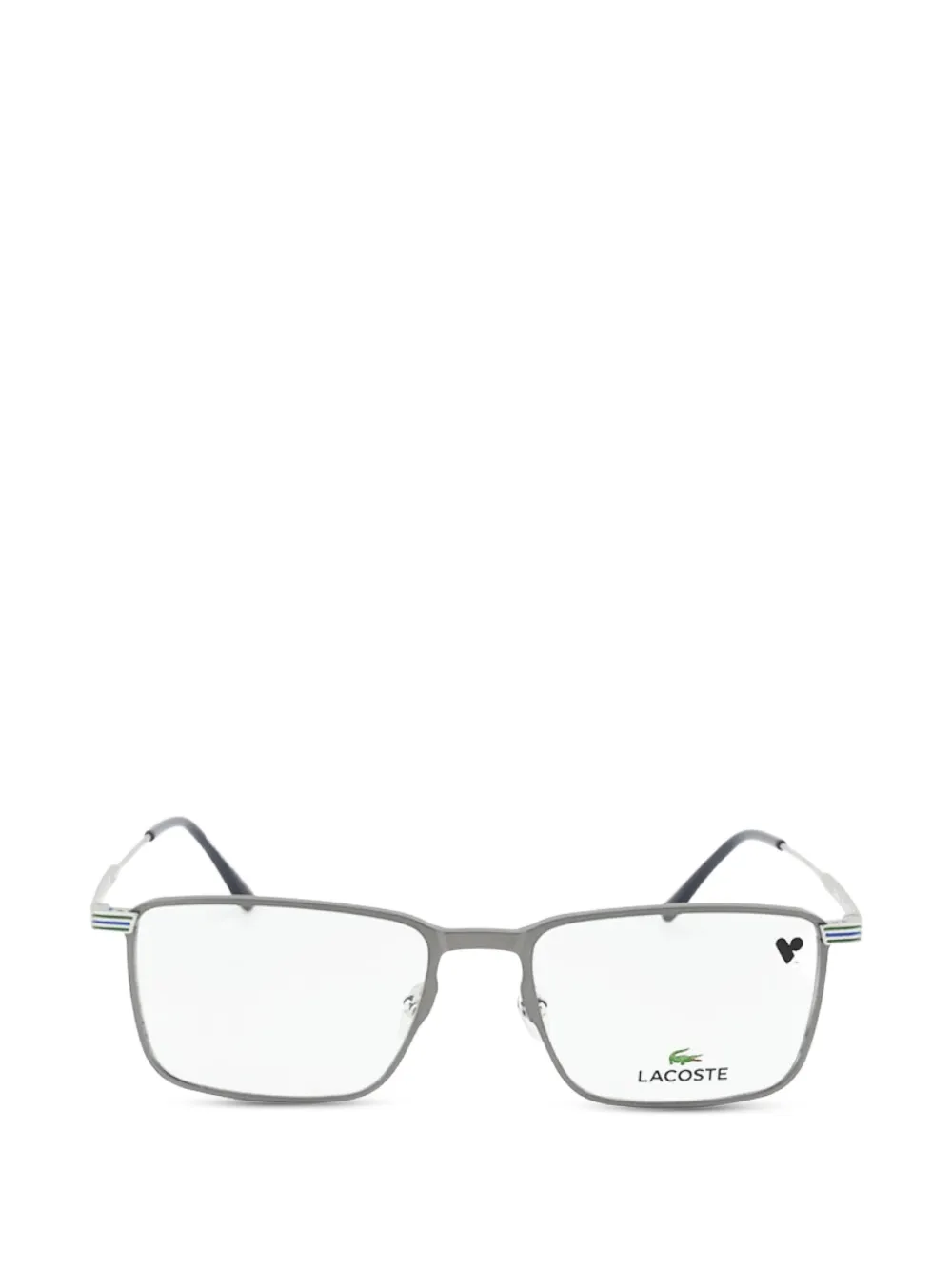 grey rectangle frame matte finish nose pads striped detail at the temples curved tips All glasses from FARFETCH are sold as non-prescription frames. These glasses come with a protective case.