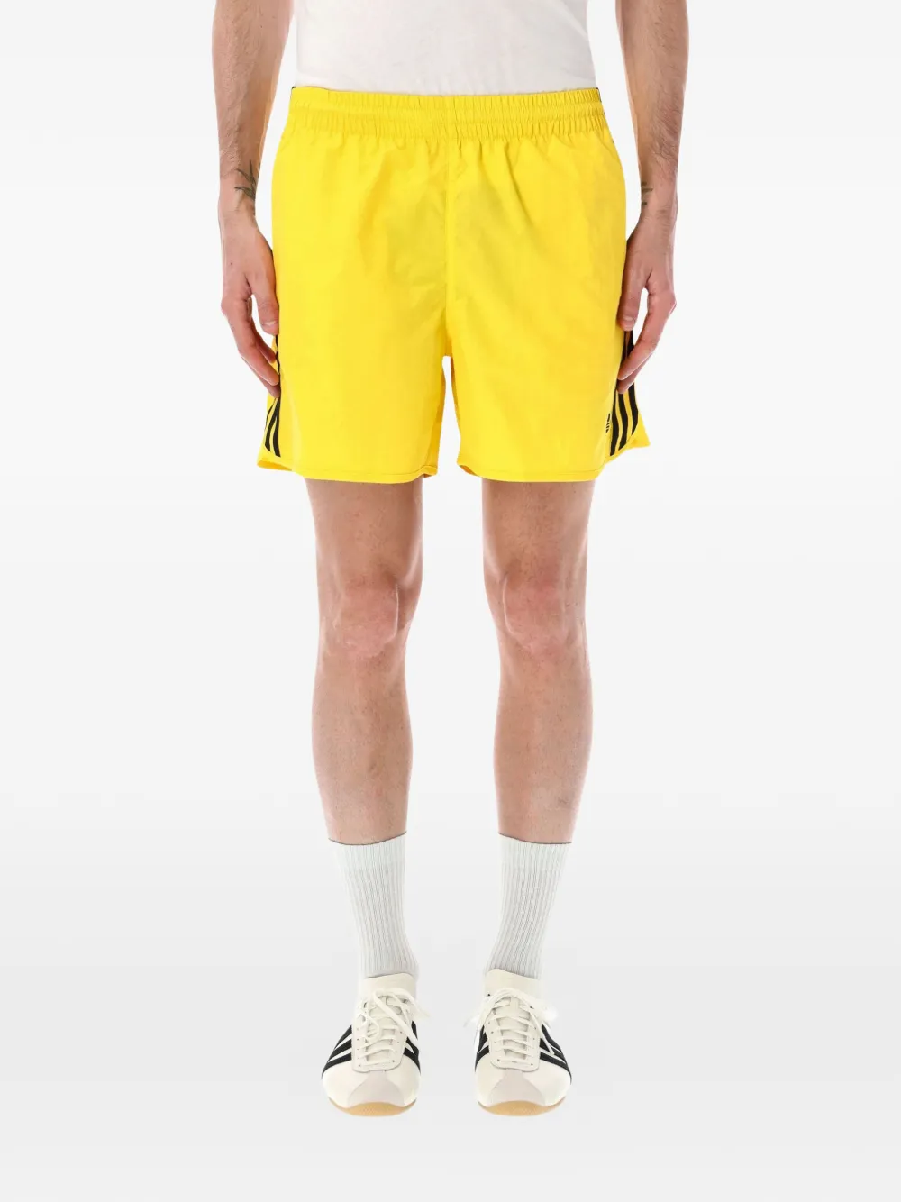 yellow elasticated waistband two side slit pockets rear patch pocket