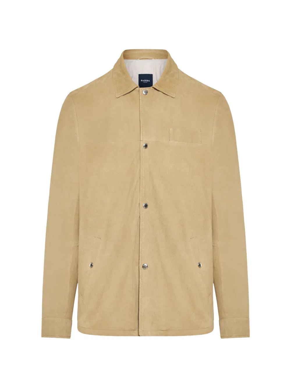 beige side pockets button fastening long sleeves point collar straight hem