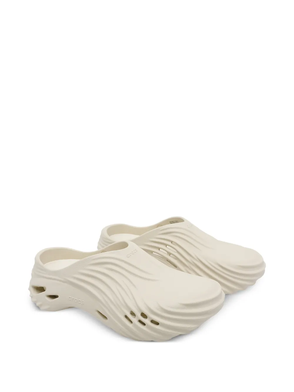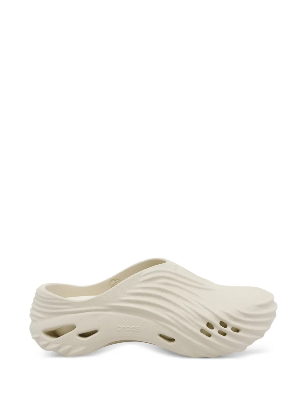 light beige wave-effect ridges slip-on style round toe perforated detailing debossed logo to the side molded footbed chunky rubber sole