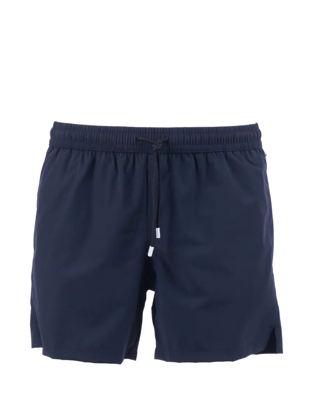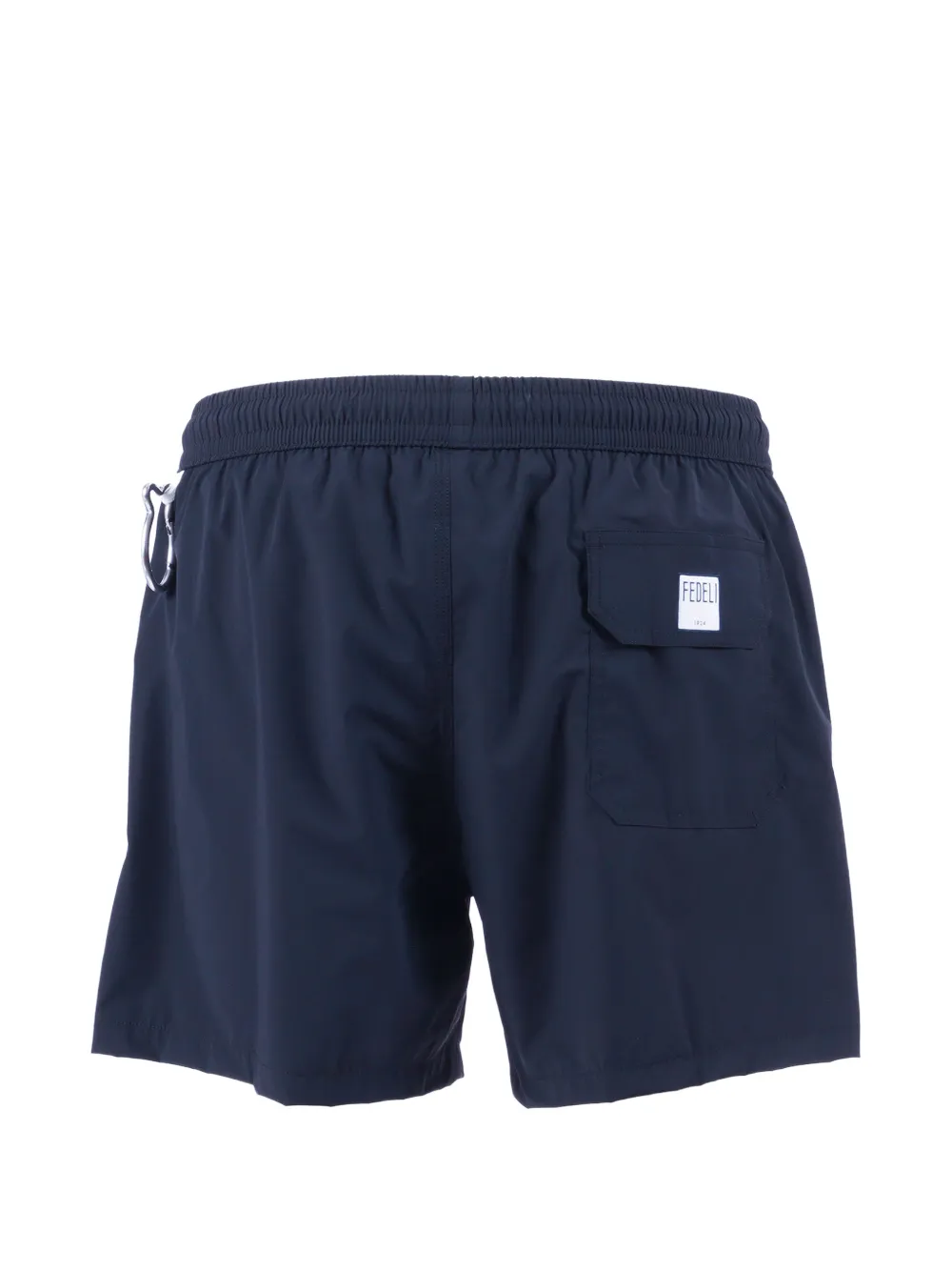 navy blue elasticated drawstring waistband silver-tone carabiner detail rear flap pocket logo patch to the rear side slit detail straight hem Be mindful to try on swimwear over your own garments.