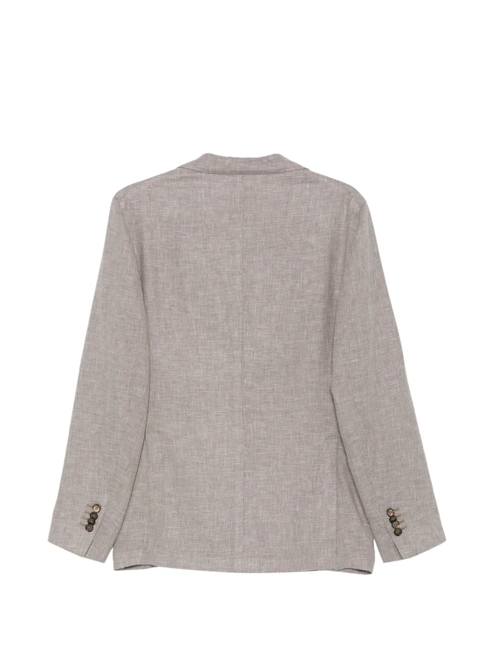 grey buttoned cuffs notched lapels front patch pockets button closure tailored fit