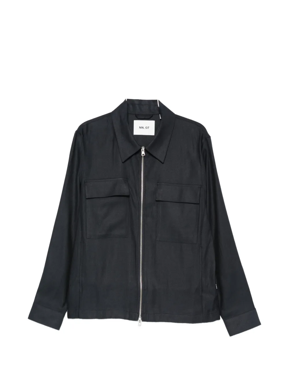 deep navy point collar zip fastening chest pockets long sleeves