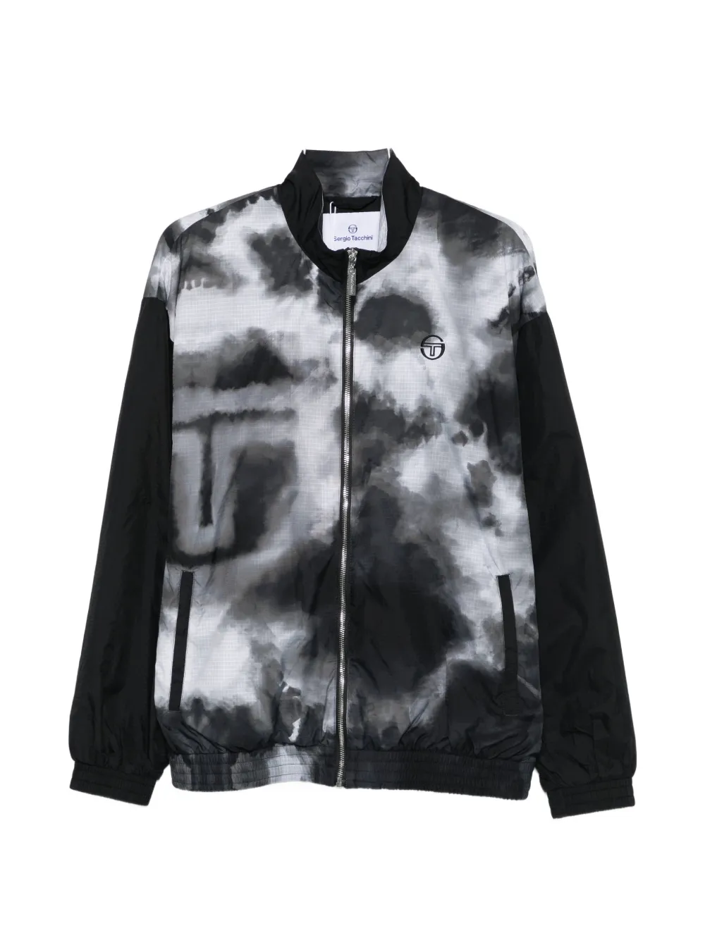 white and black patterned logo detail zip fastening long sleeves elasticated cuffs
