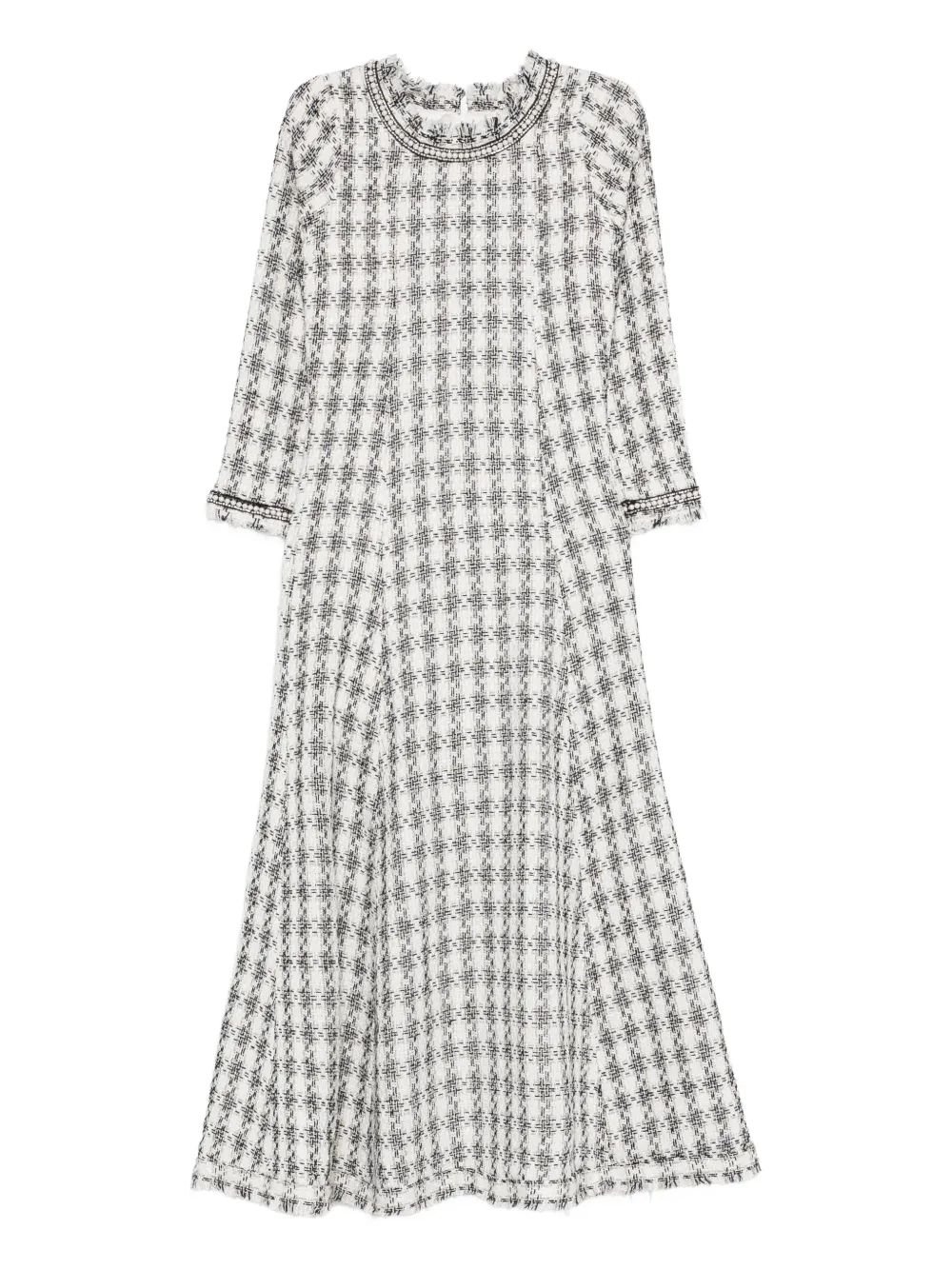 white/black checked design embellished neckline and cuffs 3/4 sleeves flared hem