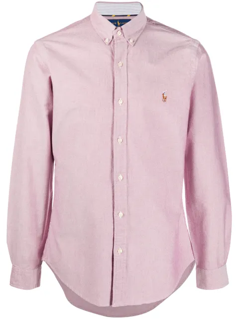 AMI Paris button tobacco-embroidery shirt