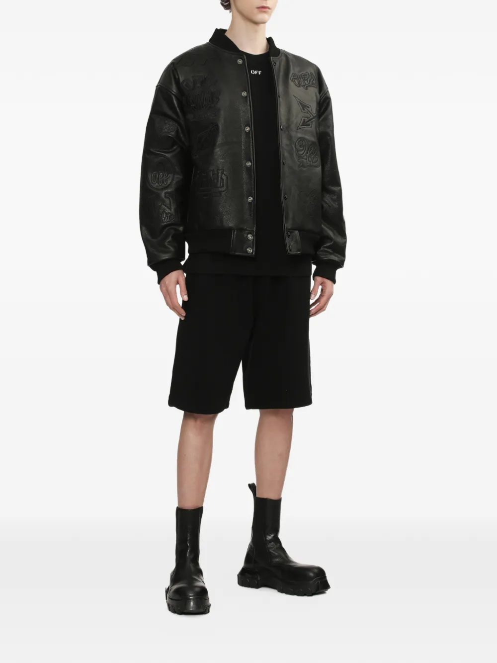 logo-embossed leather jacket