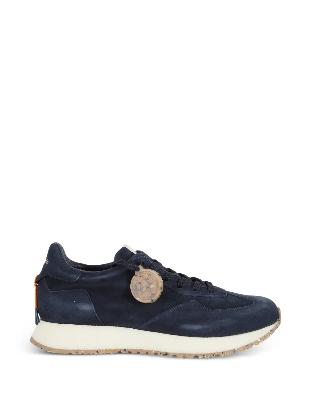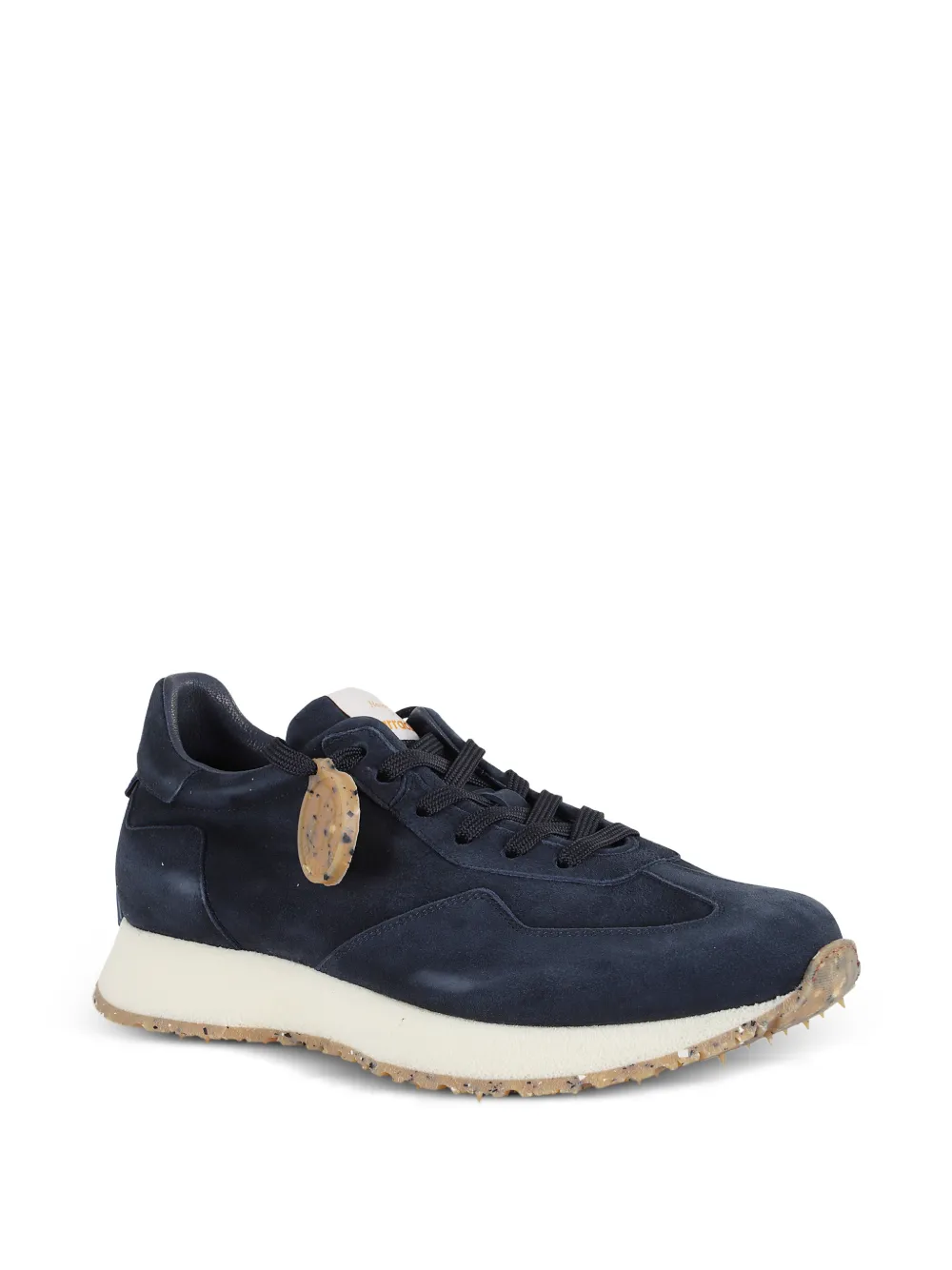 navy blue suede panels front lace-up fastening logo-print tongue logo print to the rear pull-tab at the heel foam midsole speckled rubber outsole spiked tread