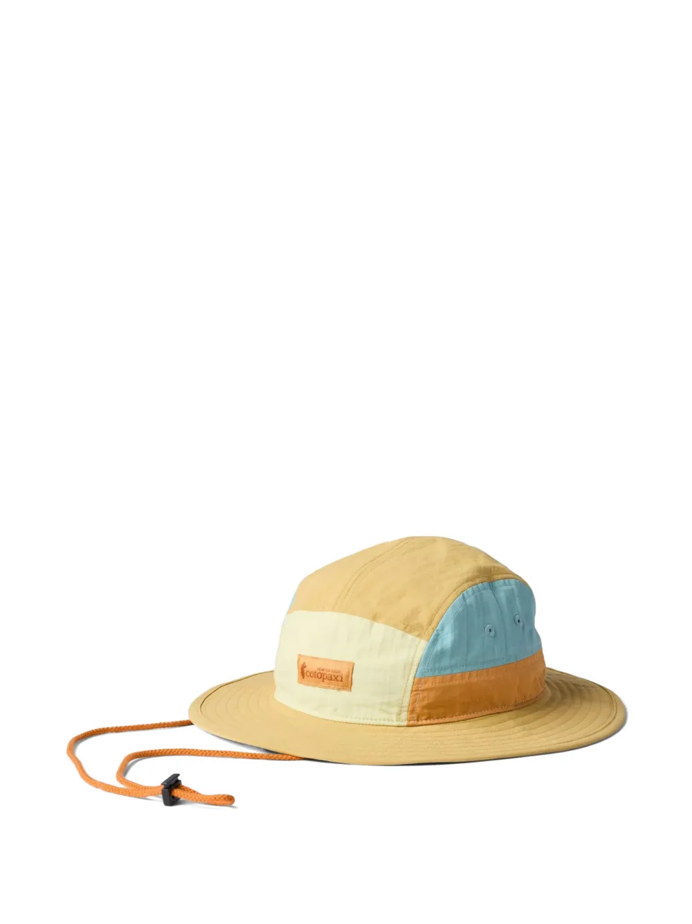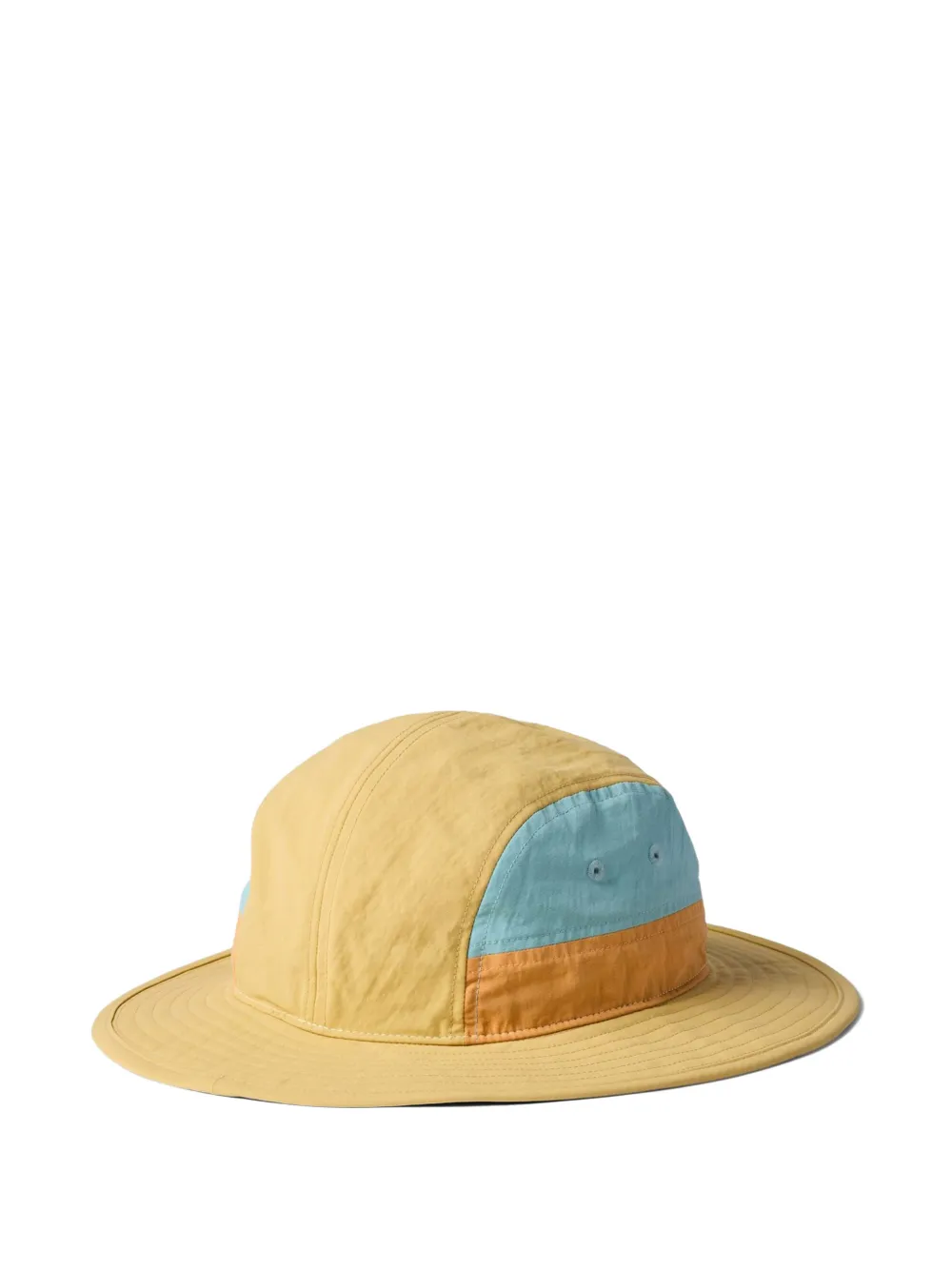 yellow multicolour colour-block design logo patch to the front eyelet detailing wide brim adjustable drawstring fastening toggle fastening