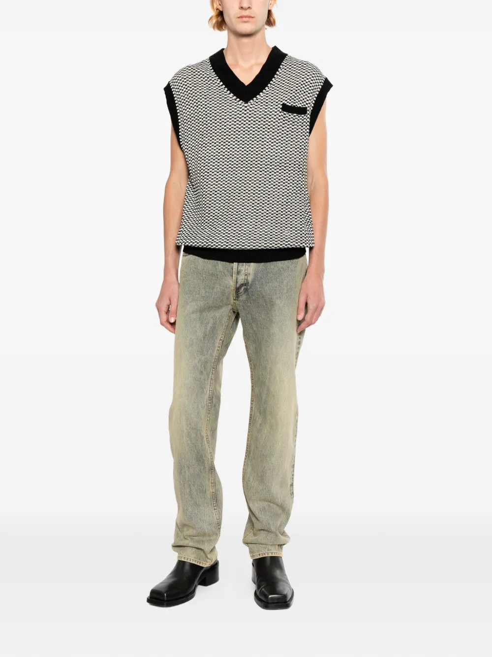 - cierre con botón y cremallera en la parte delantera