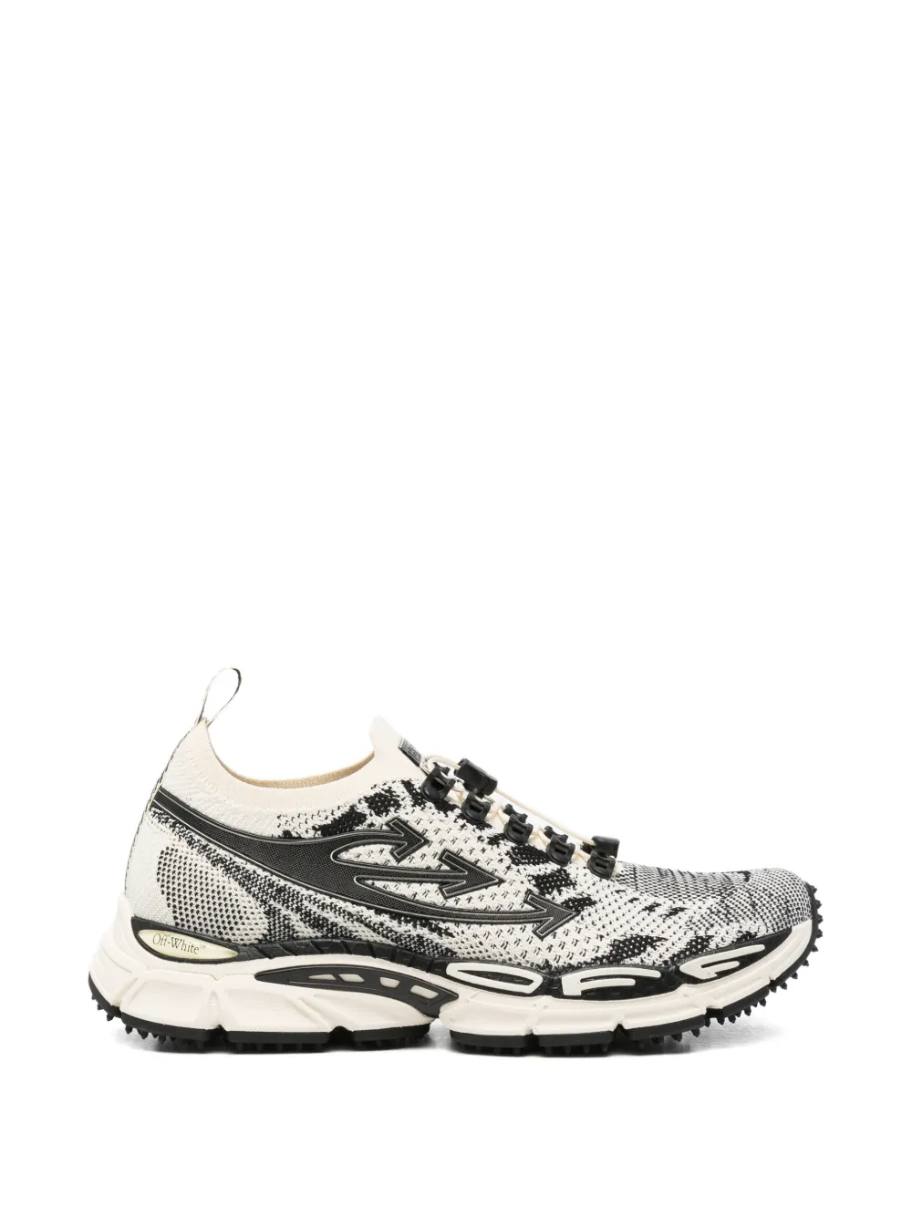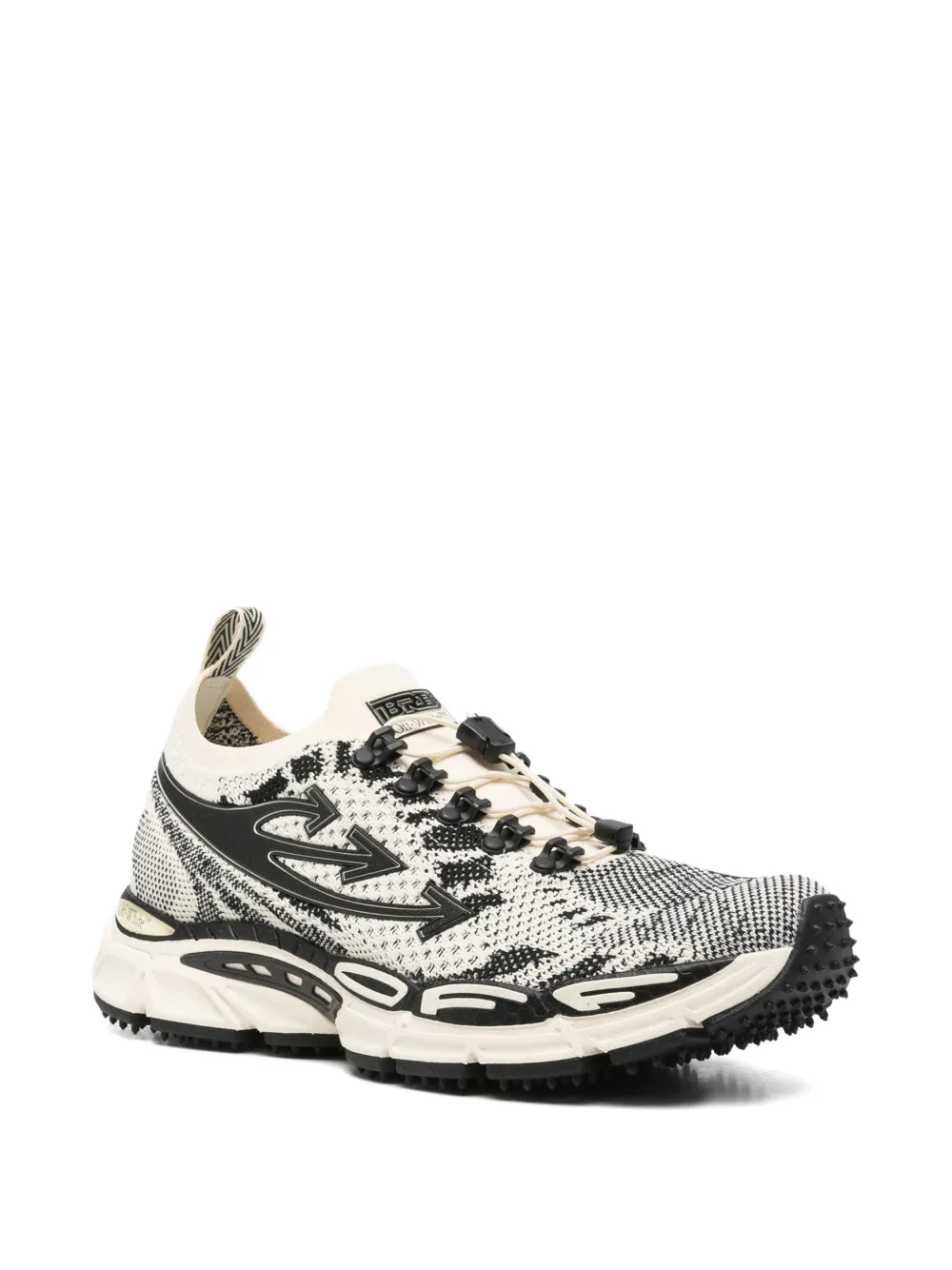 white intarsia-knit design signature Arrows motif front toggle-fastening laces pull-tab at the heel chunky rubber sole Due to the dyeing process used, this product must not come into contact with water.